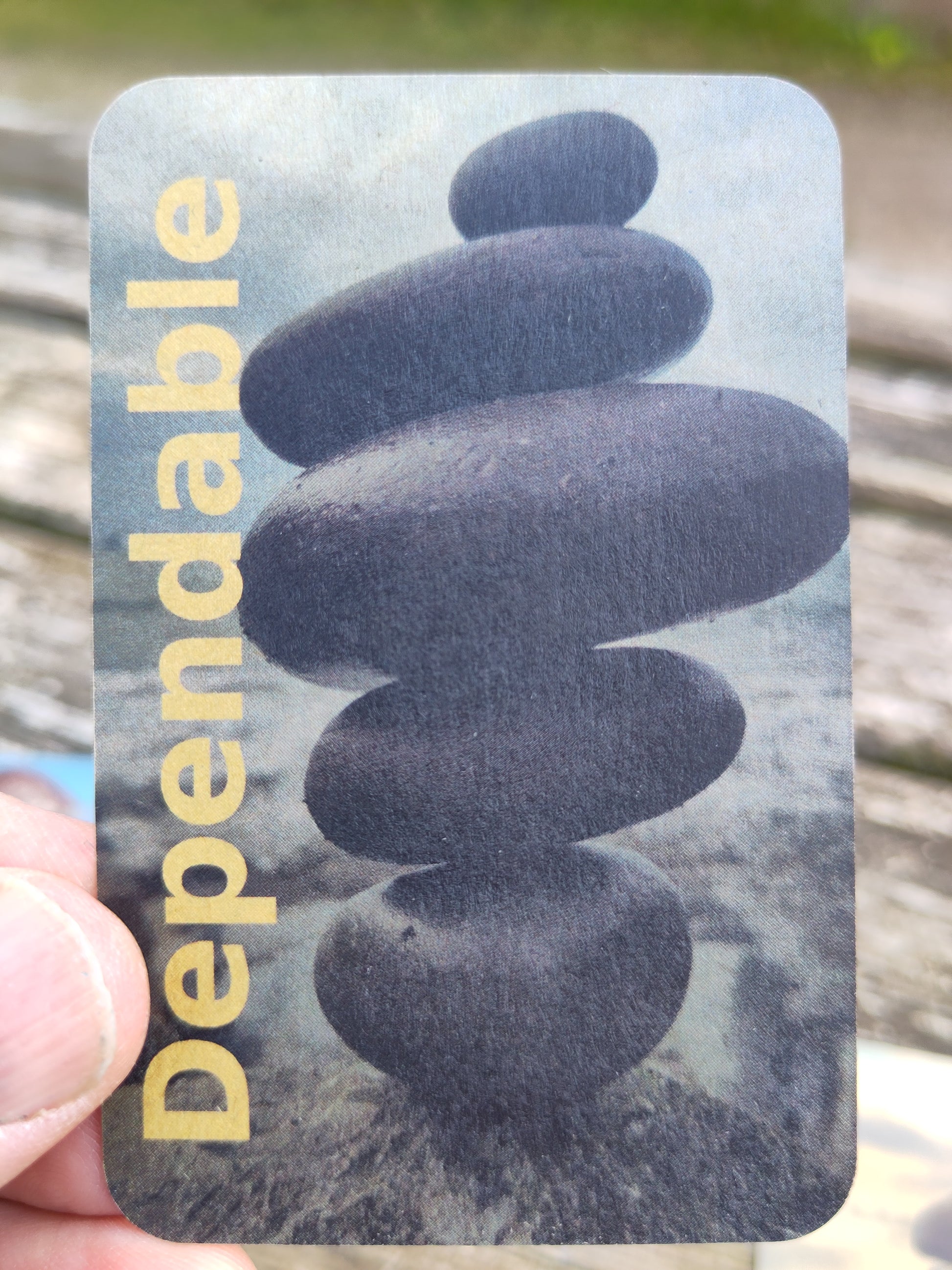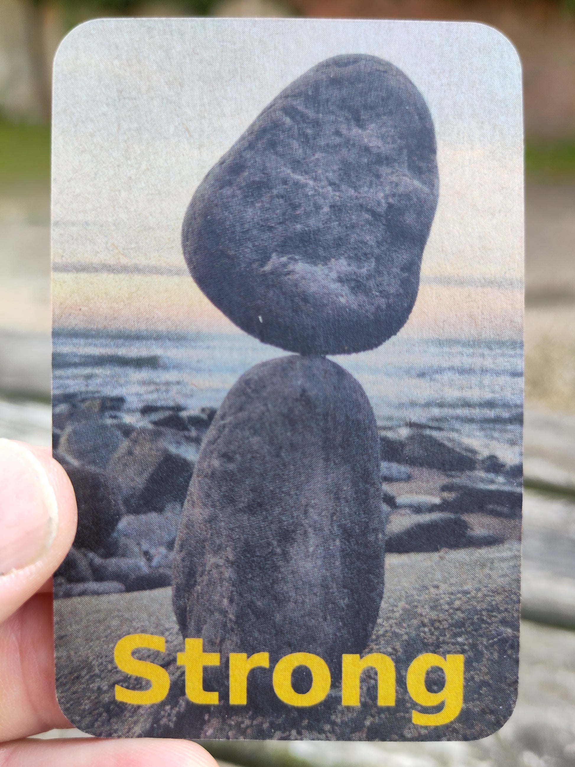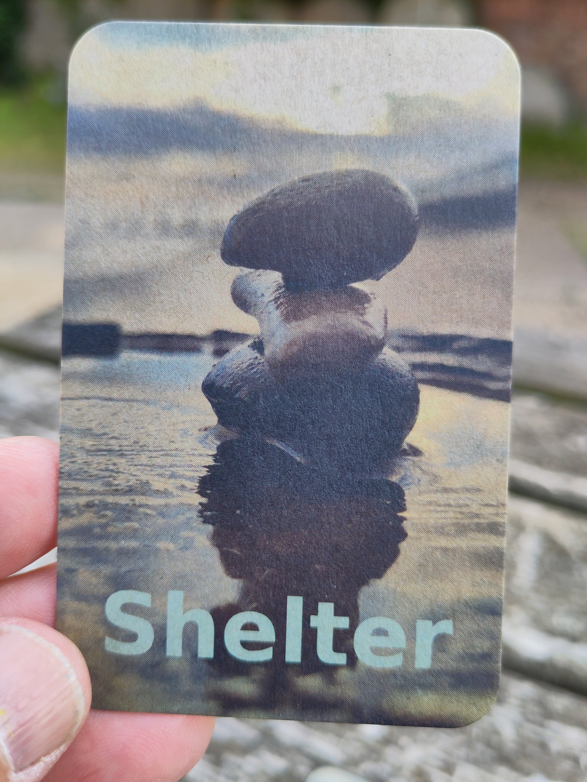 So, what are on the cards? There are 5 different pictures of sculptures, showing 'Land Art' that I have created with encouragements to keep looking to God the Rock.