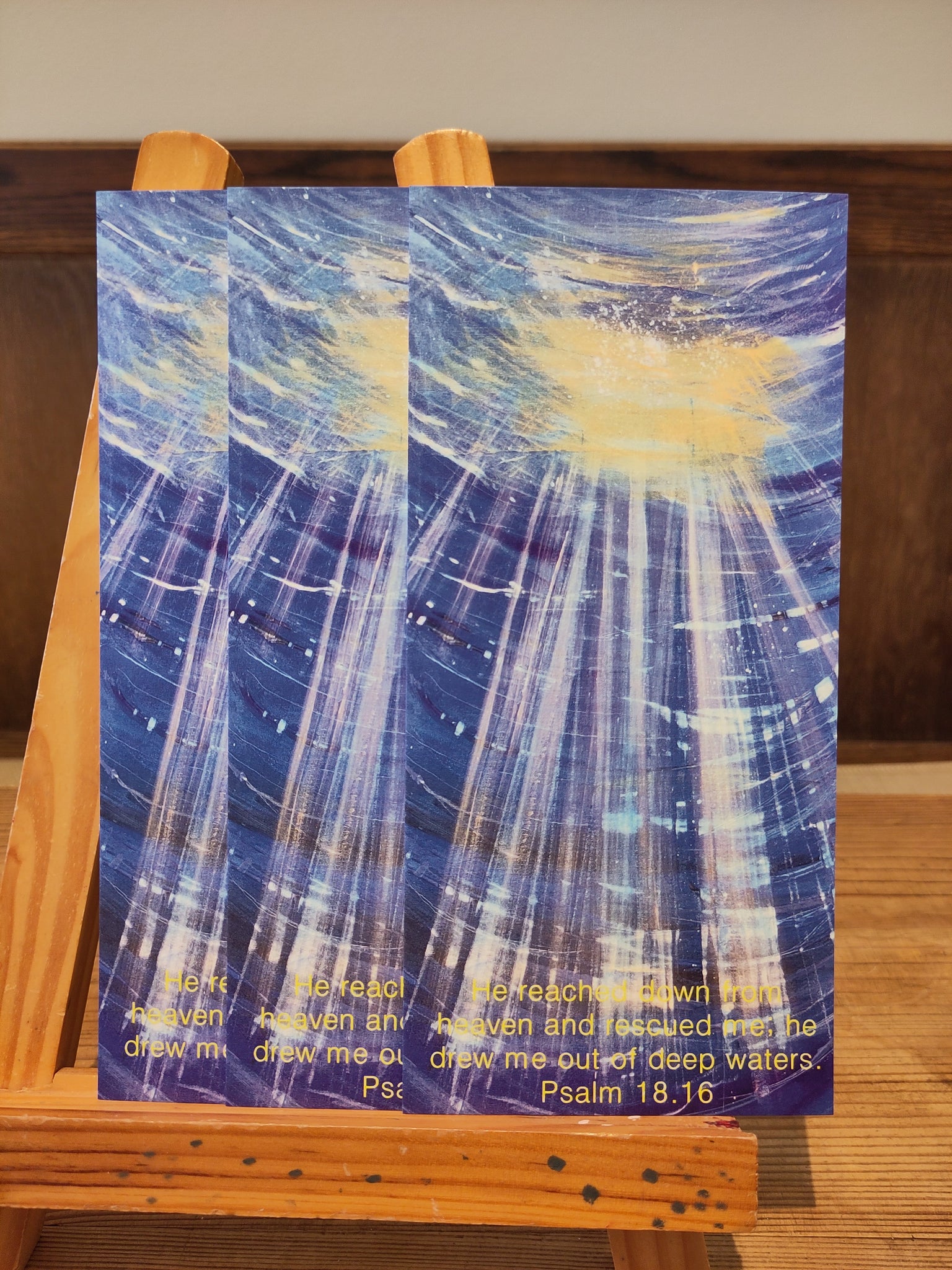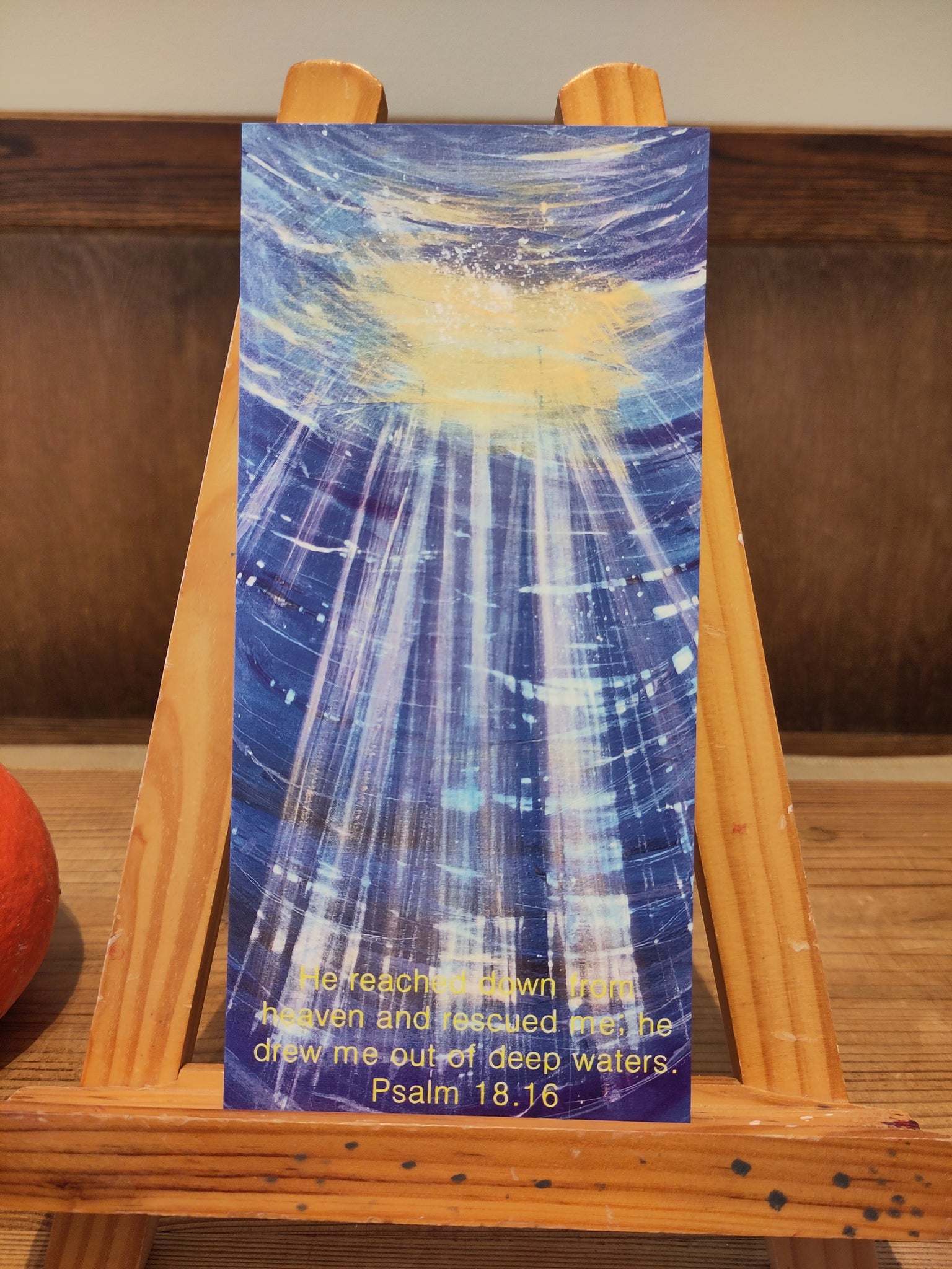 ’When you feel you have sunk low on the bottom of a sea, may you know the One who reaches down from on high to rescue, lifting you up. Where you have been in despair may you know Jesus who supports and loves you, holding you and bringing you to safety. Amen.’