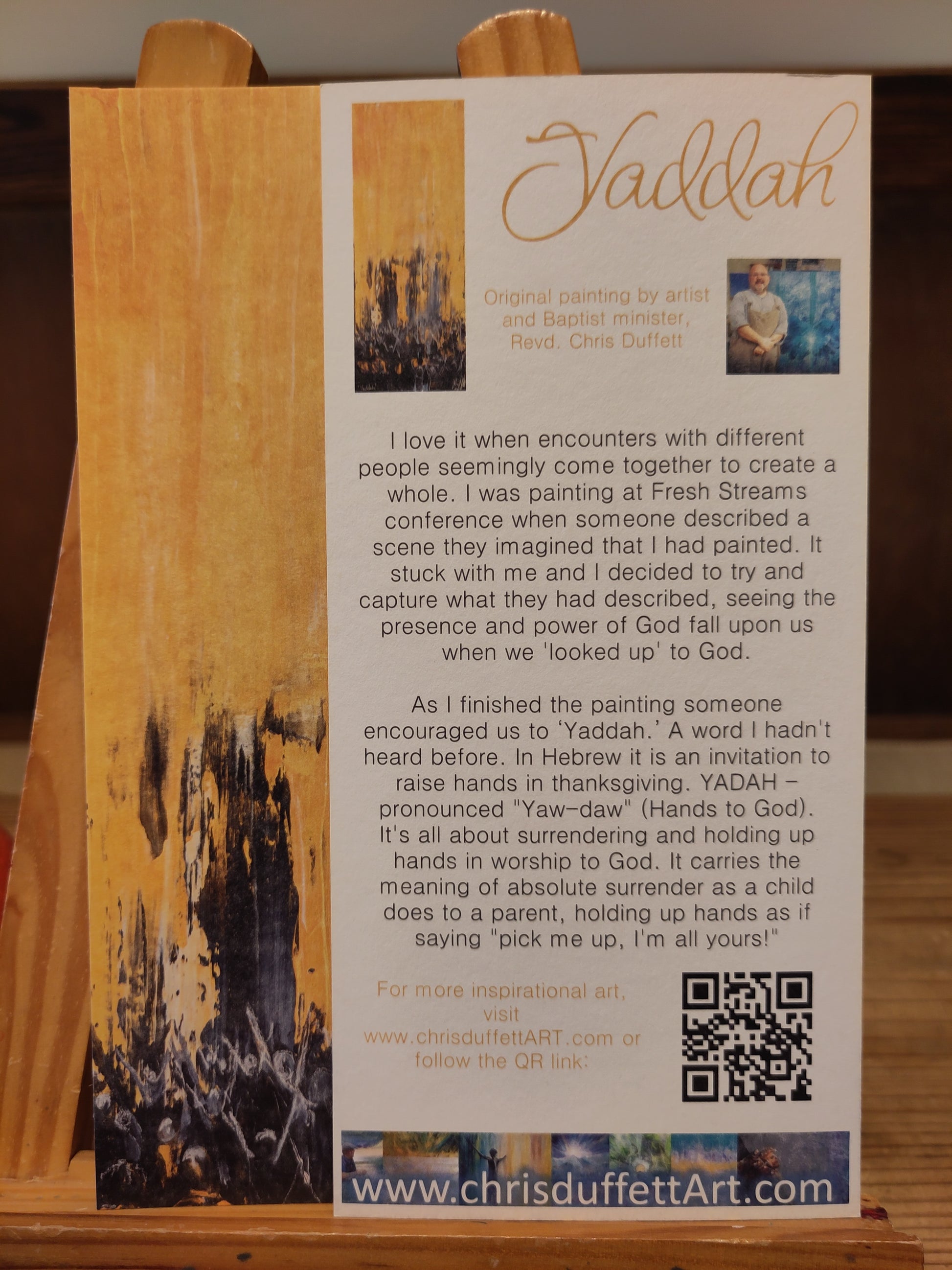 As I finished up the painting one of the leaders of the conference shared a word: Yaddah. A word I hadn't heard before but which is a Hebrew word that invites us to raise our hands in thanksgiving. YADAH - pronounced "Yaw-daw" (Hands to God).