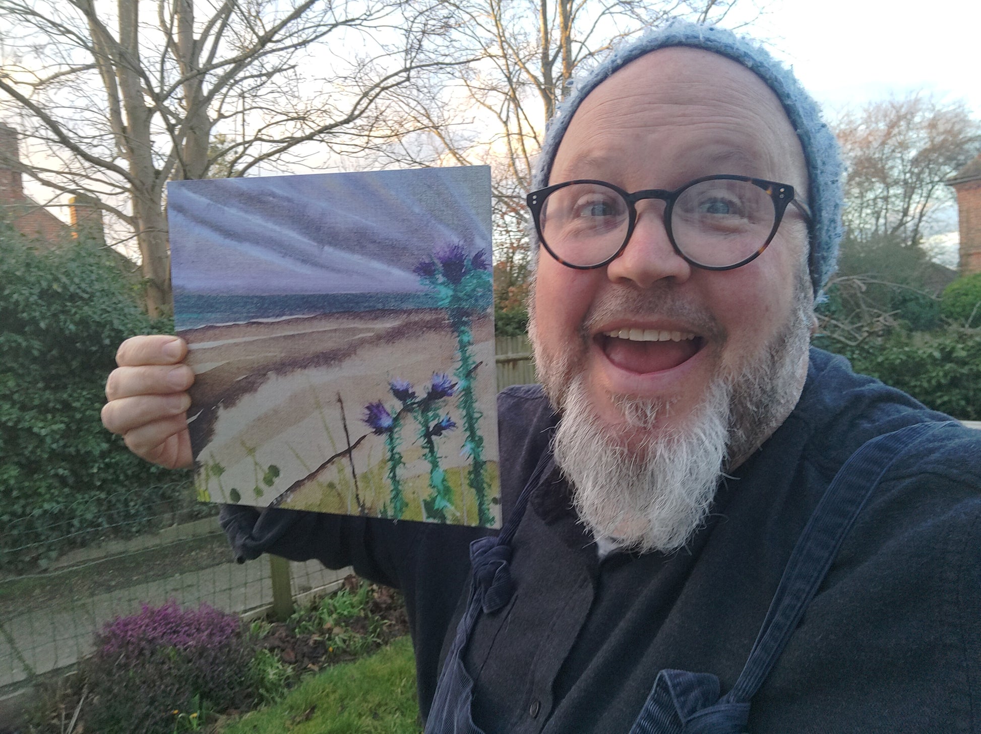 This simple acrylic ink painting reveals the scene looking down to where I stayed on the island, capturing some of the beautiful defiant yet delicate thistles.