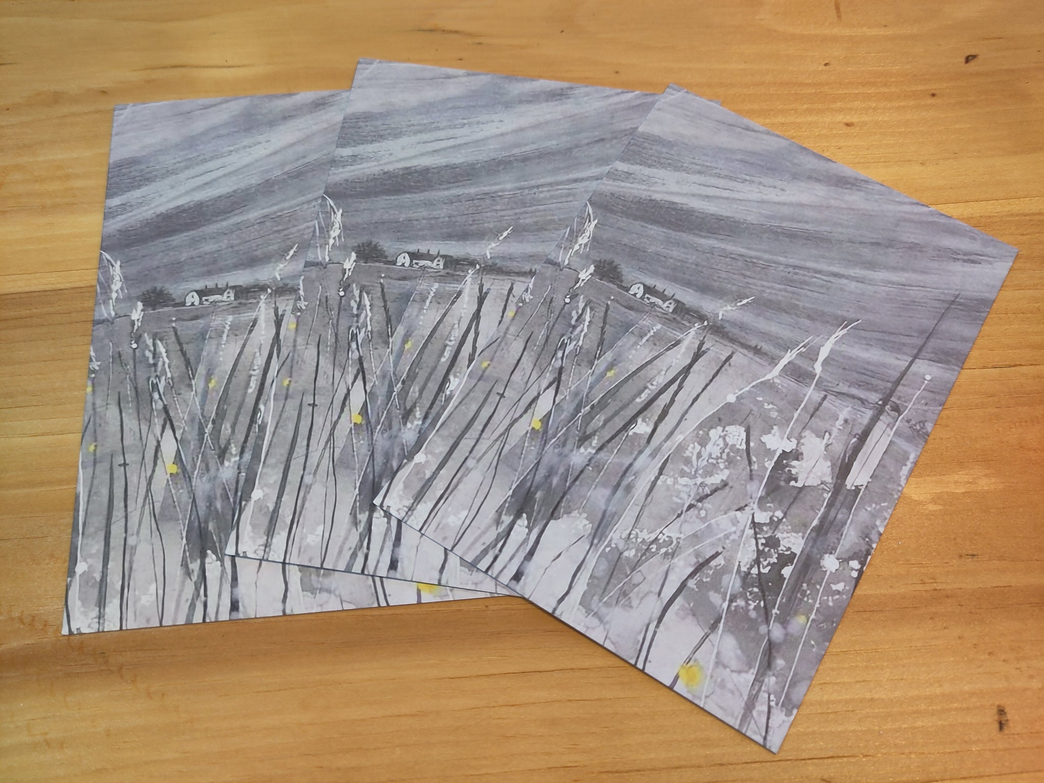 Inspired by serving as chaplain on the island of Bardsey off the Llyn Peninsula of North Wales this card captures the grasses and detail as I painted from my knees.