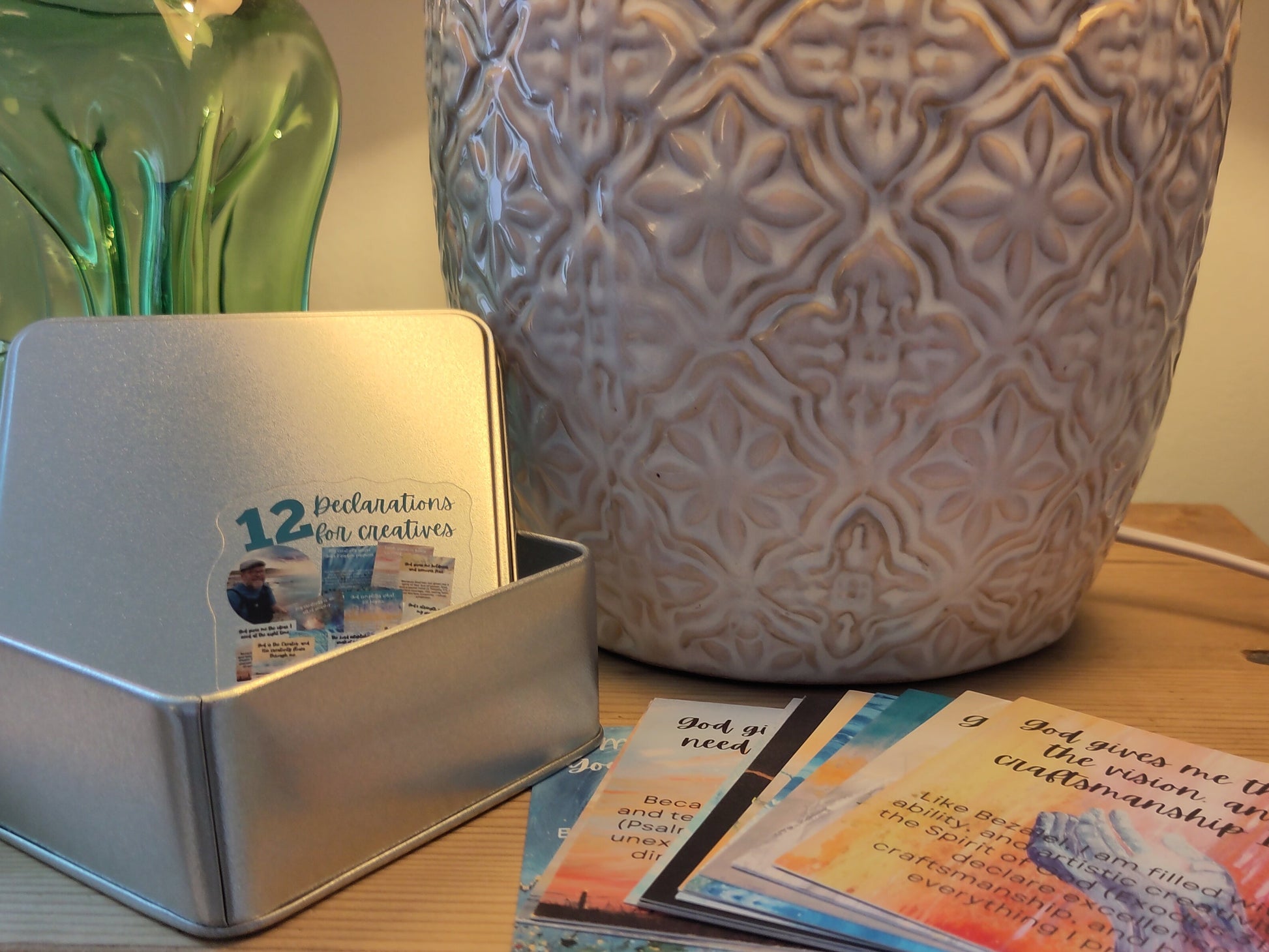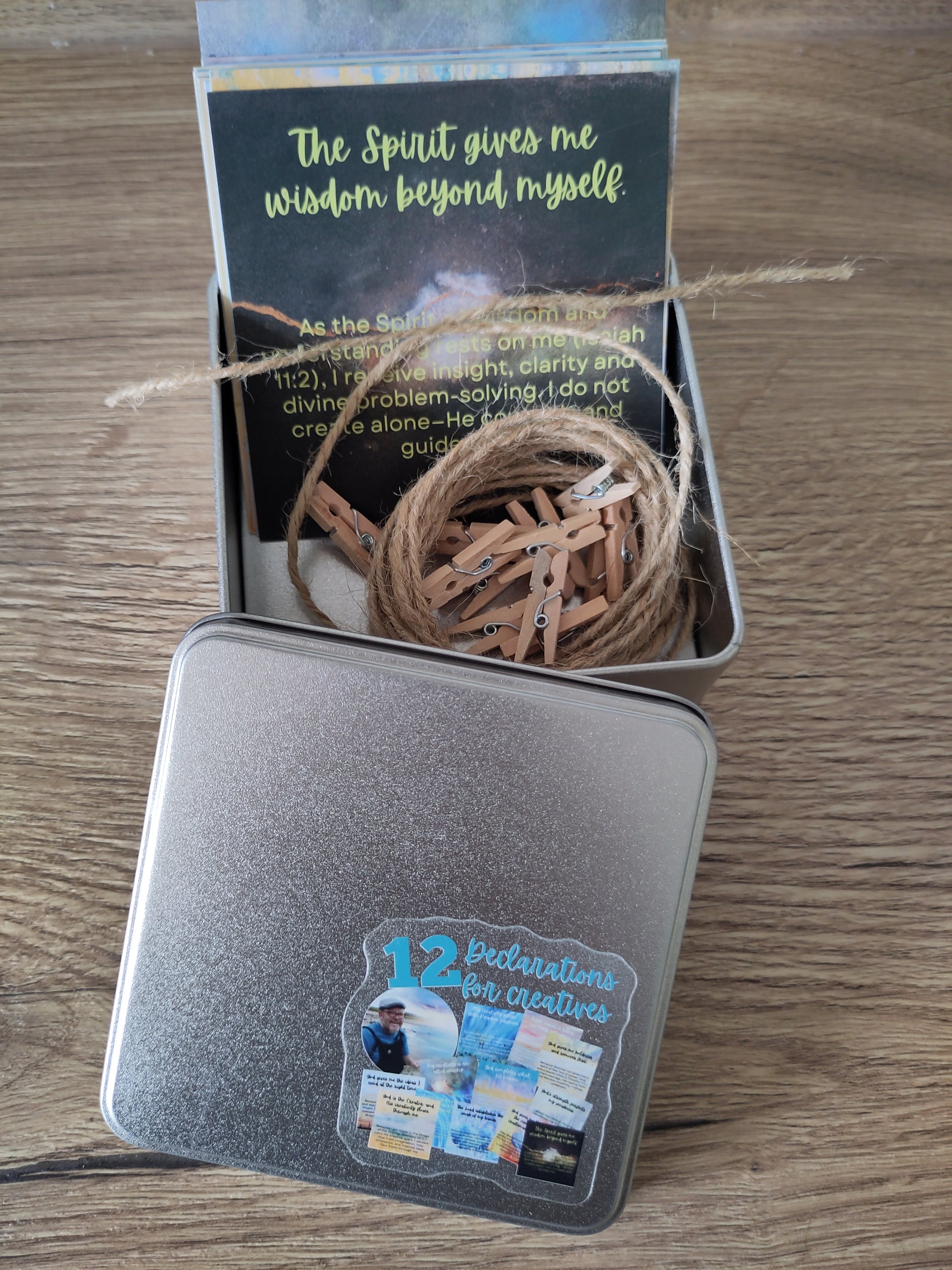 These tins will make beautiful presents or serve as a daily reminder for those working in studios, writing at desks or teaching others. Choose one each day over 12 days and remind yourself what God declares over you and your creativity, or hang them up with string and pegs as a constant reminder in your creative space what spiritual resources you have at your disposal!