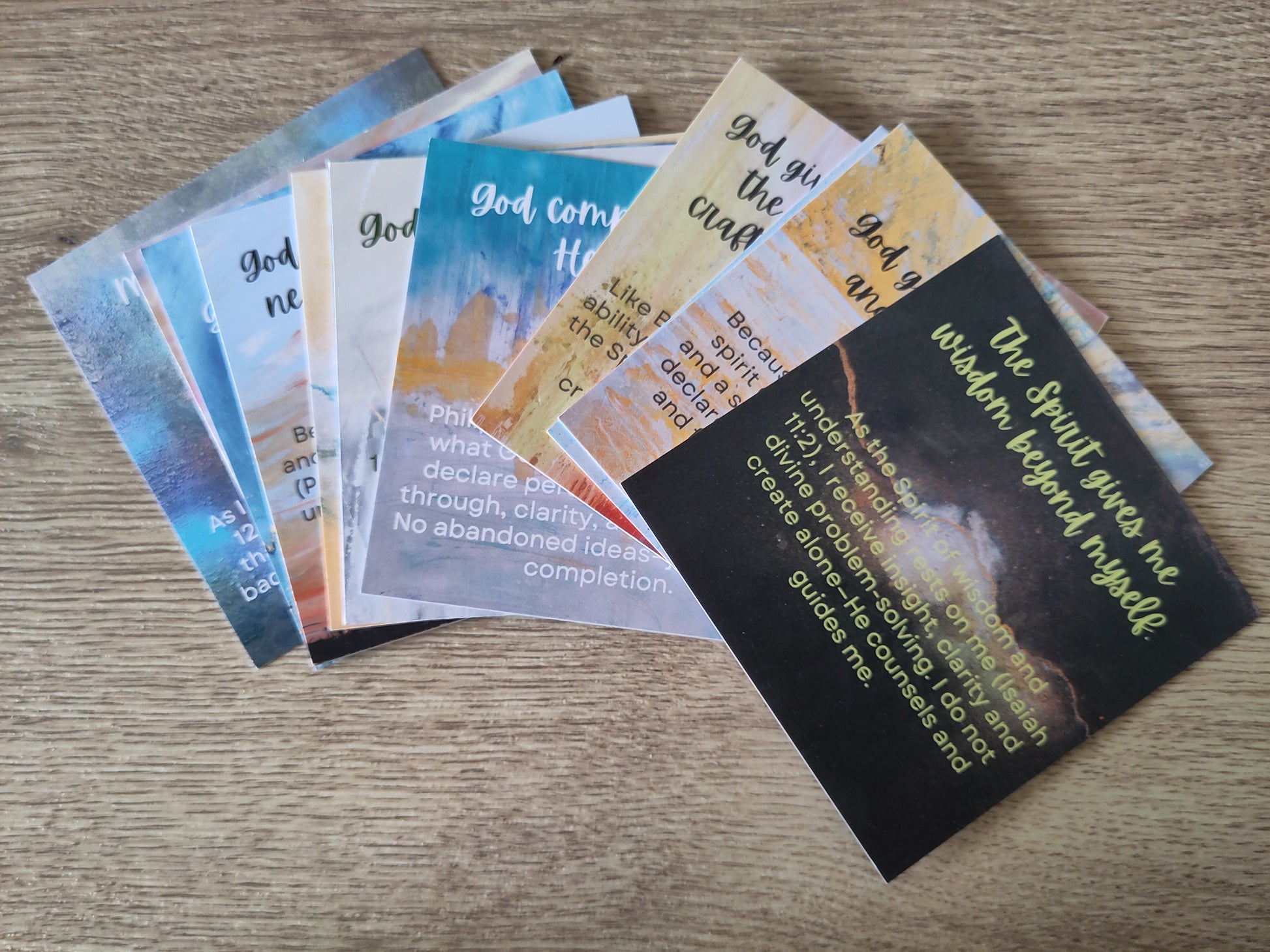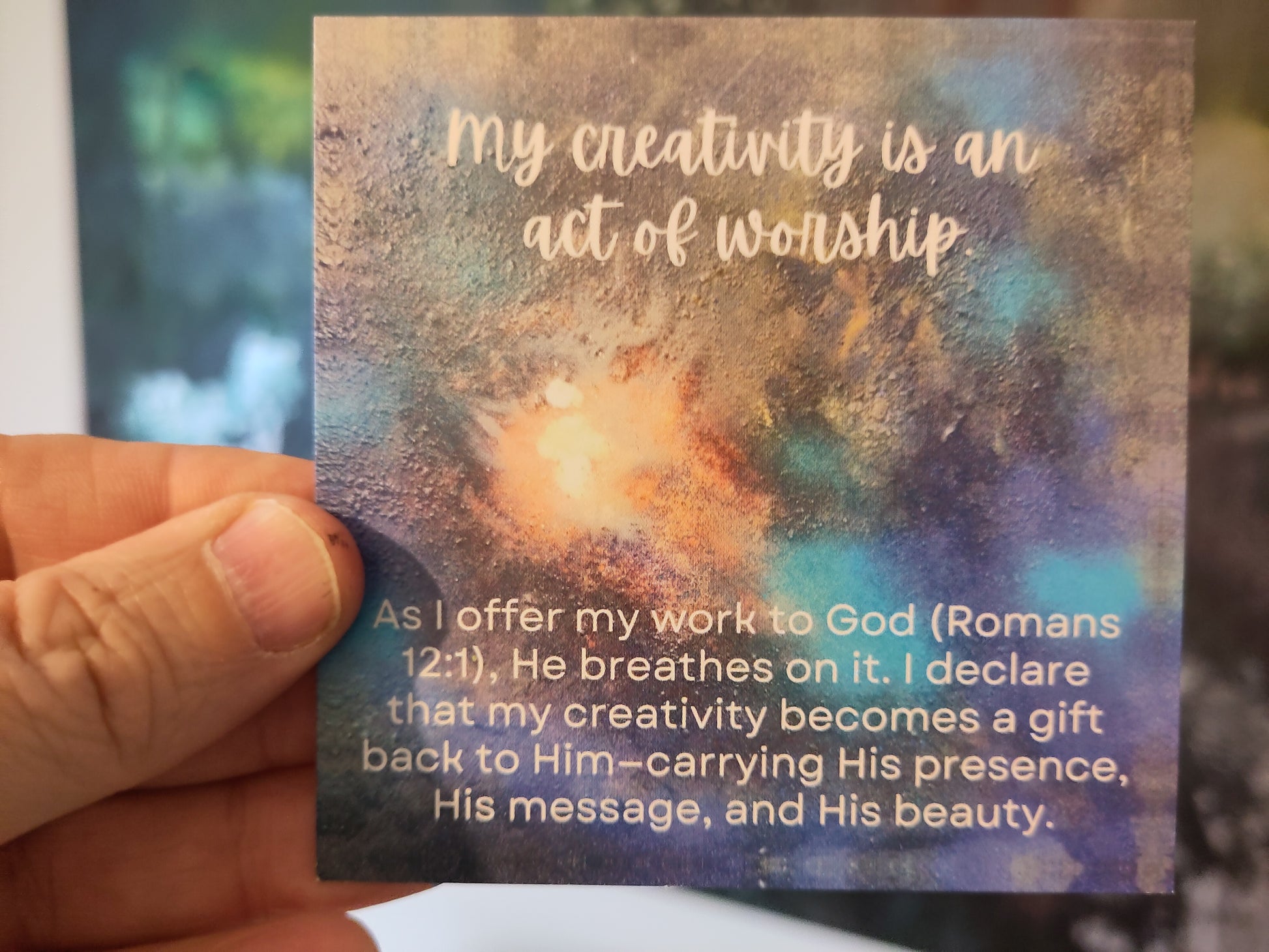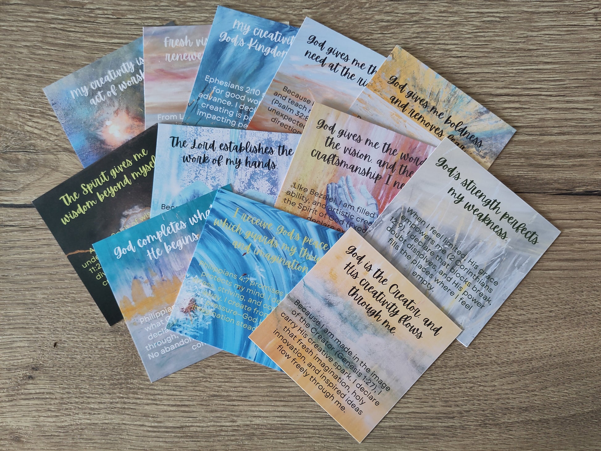12 powerful declarations for creatives on 10cm by 10cm cards. Faith statements inspired by scripture to declare over your work and creativity!