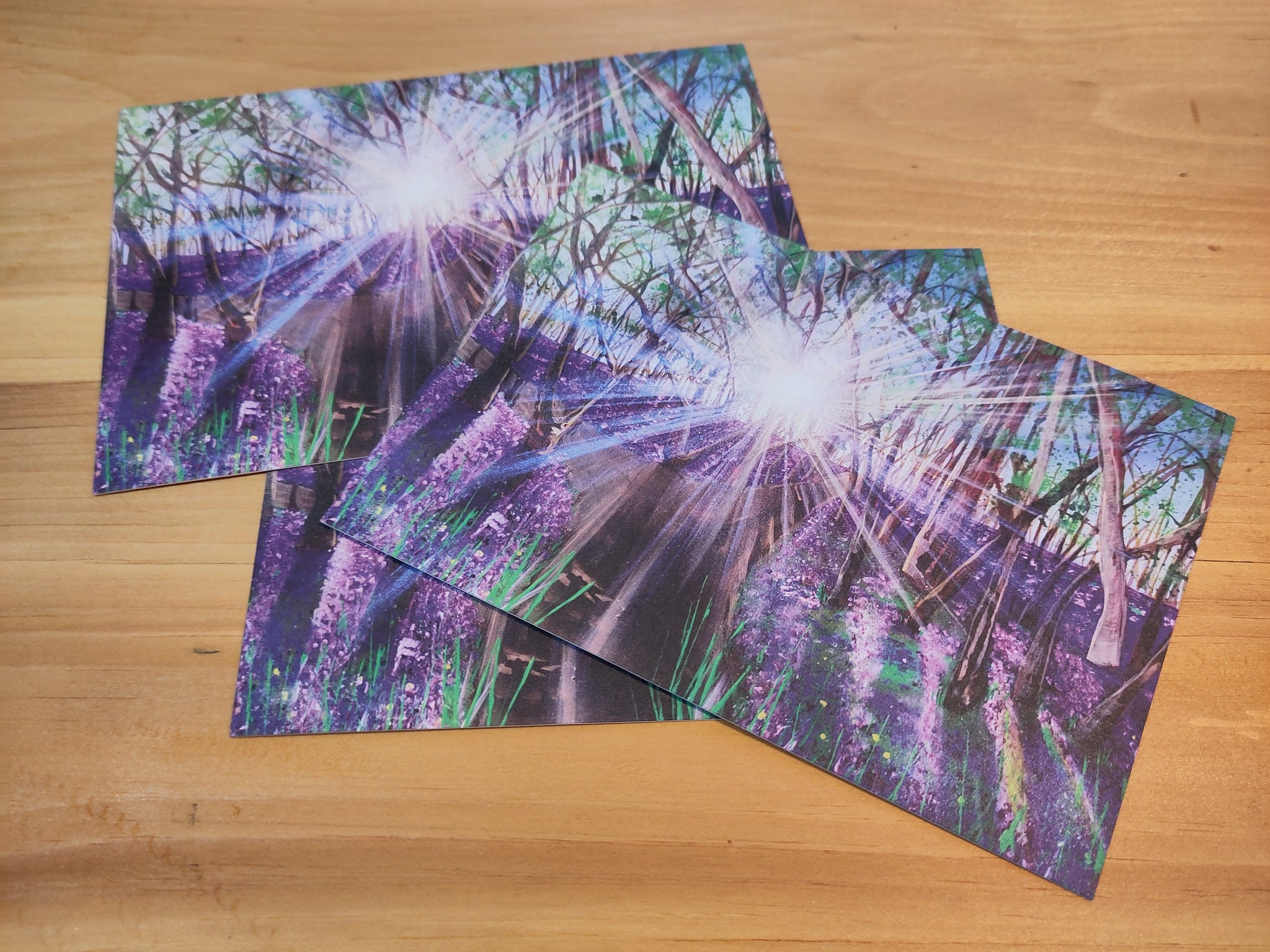 Last year I spent a day painting in our local blue bell woods. I did loads of sketches and a small painting. This painting celebrates the wonder of our local woodland and the blue carpet that 'like magic' appears each year!